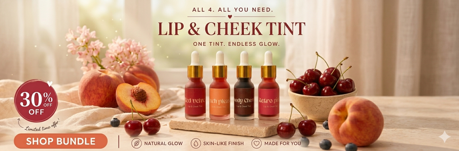 Discover the beauty of simple, natural makeup with our organic lip and cheek tints. In this video, we show how our shades bring a fresh, healthy glow to everyday looks. Made with gentle ingredients like aloe vera, rose water, and glycerine, our tints are designed to add beautiful color while keeping your skin feeling soft and comfortable.